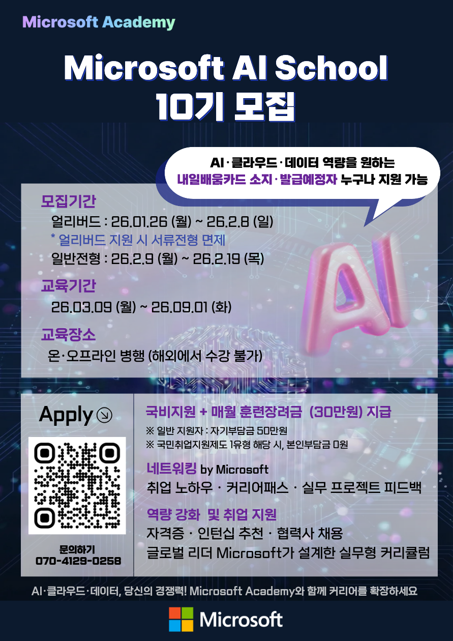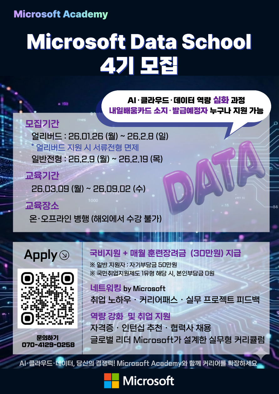 NEWMICROSOFT AI SCHOOL 10기 / MICROSOFT DATA SCHOOL 4기 동시 모집 ~2월 19일(목)까지